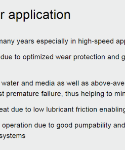 – Khả năng chống nước và môi trường tuyệt vời cũng như các chất phụ gia chống ăn mòn trên mức trung bình bảo vệ vòng bi khỏi bị hỏng sớm, do đó giúp giảm thiểu chi phí sửa chữa.